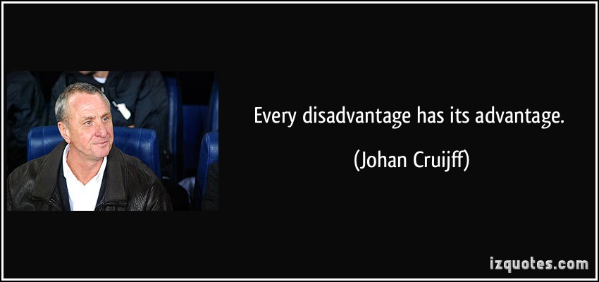 Every disadvantage has its advantageFollow me on TikTok. And every disadvantage has its advantages too. Every disadvantage has its advantage Johan Cruijf.