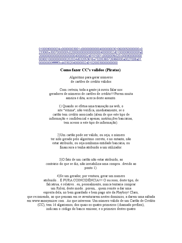25 de outubro de 2009 1747 Anonymous disse. Os passos para criar os seus cartões fictícios de. 1 Quando se efetua uma transação na web o site vitima não verifica imediatamente se o cartão tem crédito associadoalem de que este tipo de informação e confidencial e apenas instituições bancárias tem acesso a este tipo de informação.