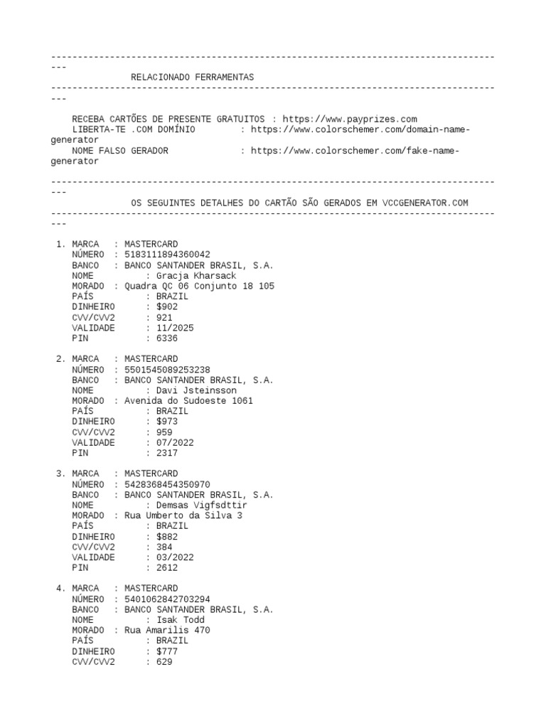 Link para download http. Ou seja não se trata de um cartão de crédito válido para compras sendo que qualquer tentativa dessas operações será impedida pelas plataformas de pagamento. MiNa ToP HANK.