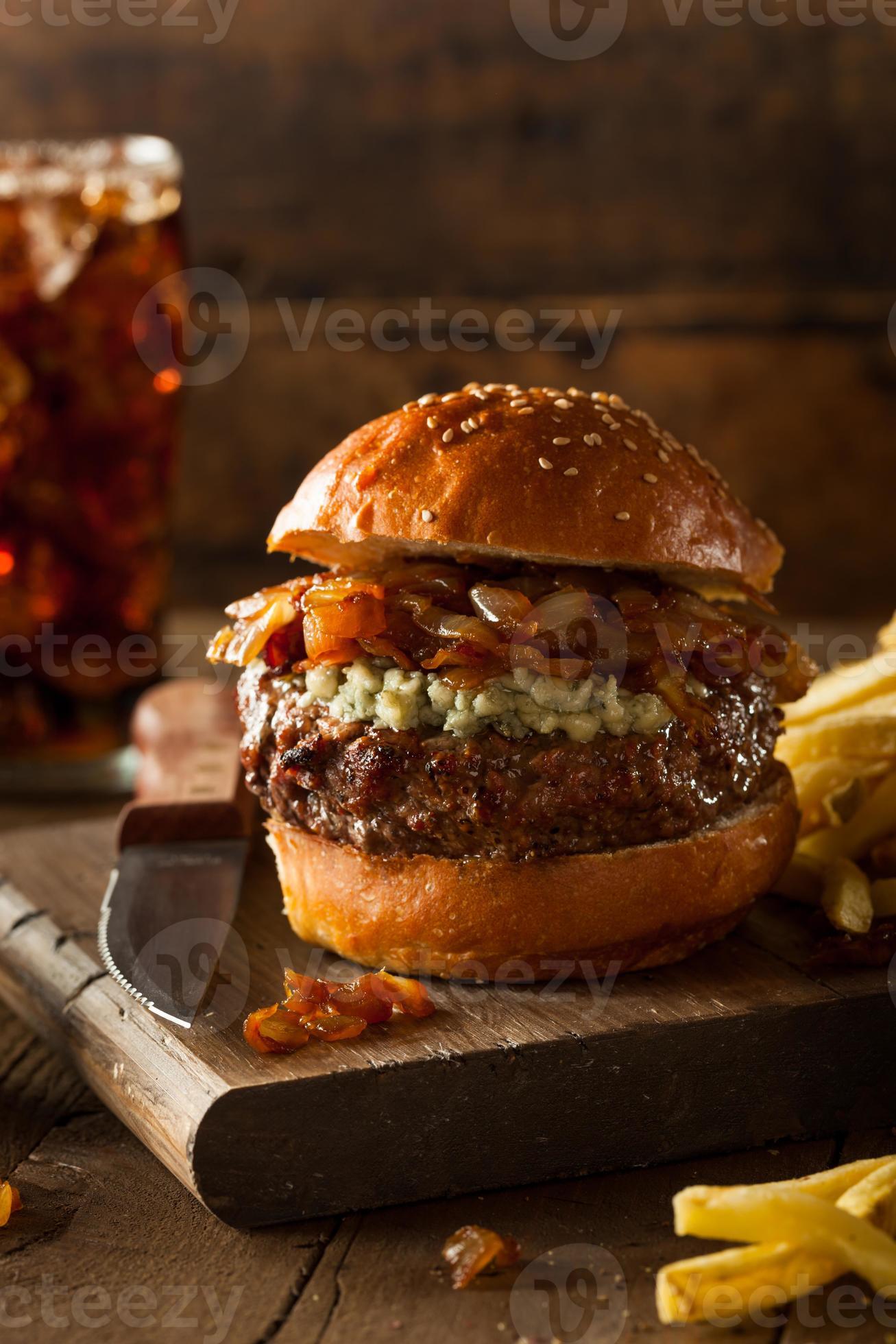 Hamburguesa con queso azul. Download hamburguesa con queso azul y rucula Stock Photo and explore similar images at Adobe Stock. Echarle una pizca de sal y el azúcar rubia y dejar que caramelice a fuego bajo. Cuando esté hirviendo agregar el queso azul.
